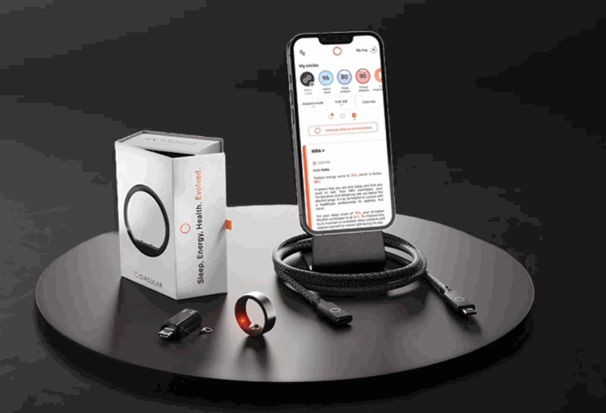 صورة توضيحية لخاتم Circular Ring 2 الذكي مع تصميم أنيق ومزايا مبتكرة لتحليل الصحة ومراقبة النوم.