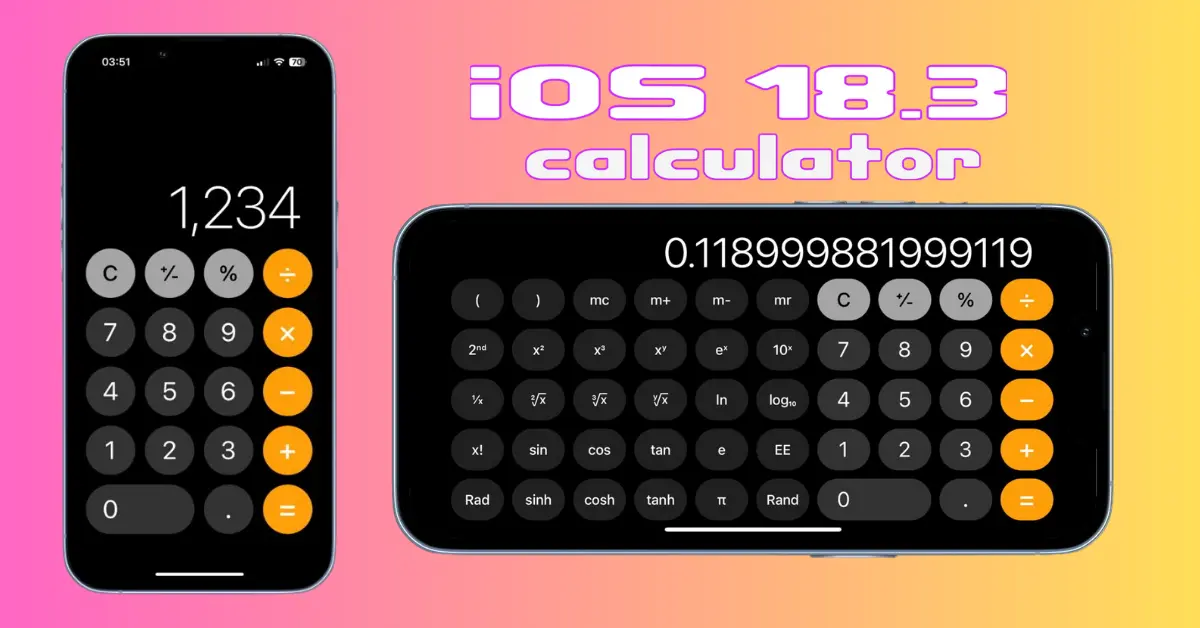 واجهة تطبيق الآلة الحاسبة في تحديث iOS 18.3 Beta 2.