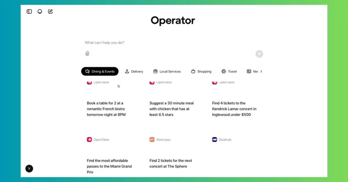 صورة توضيحية لأداة Operator من OpenAI تُظهر كيفية استخدام الذكاء الاصطناعي لتنفيذ المهام اليومية مثل حجز التذاكر والتسوق عبر الإنترنت.
