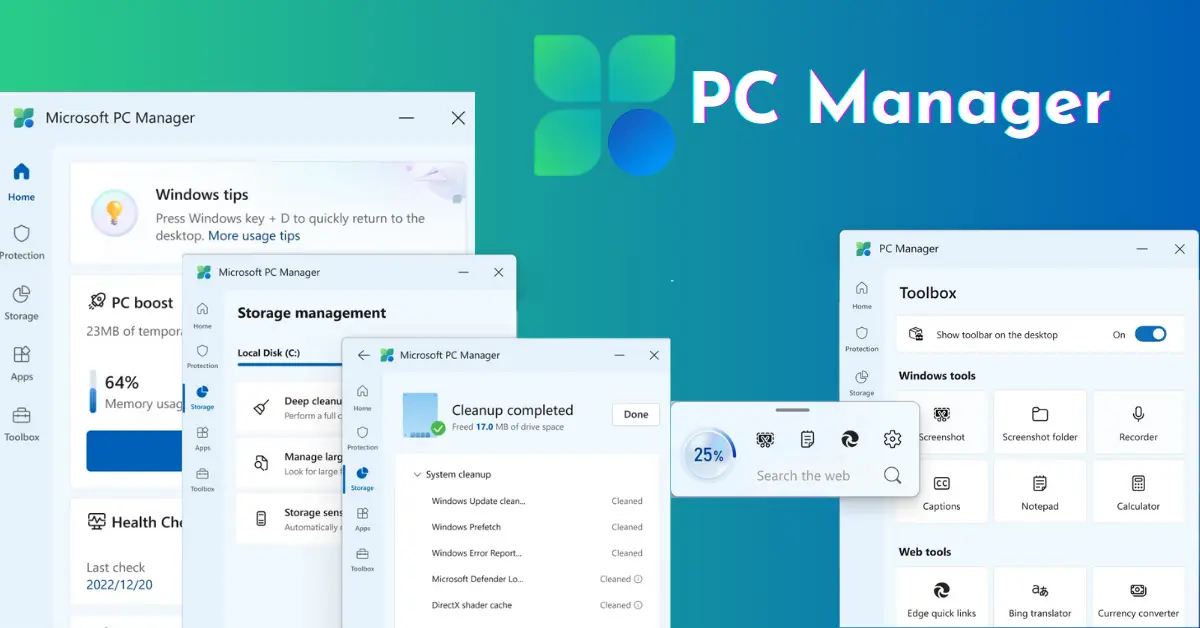 مايكروسوفت قدمت لك PC Manager، الأداة الرسمية التي تجمع بين تحسين الأداء، تنظيف الملفات غير الضرورية، وإدارة التطبيقات في واجهة سهلة الاستخدام. بضغطة زر، يمكنك تسريع النظام، تحرير المساحة التخزينية، وإدارة التطبيقات التي تبطئ جهازك.