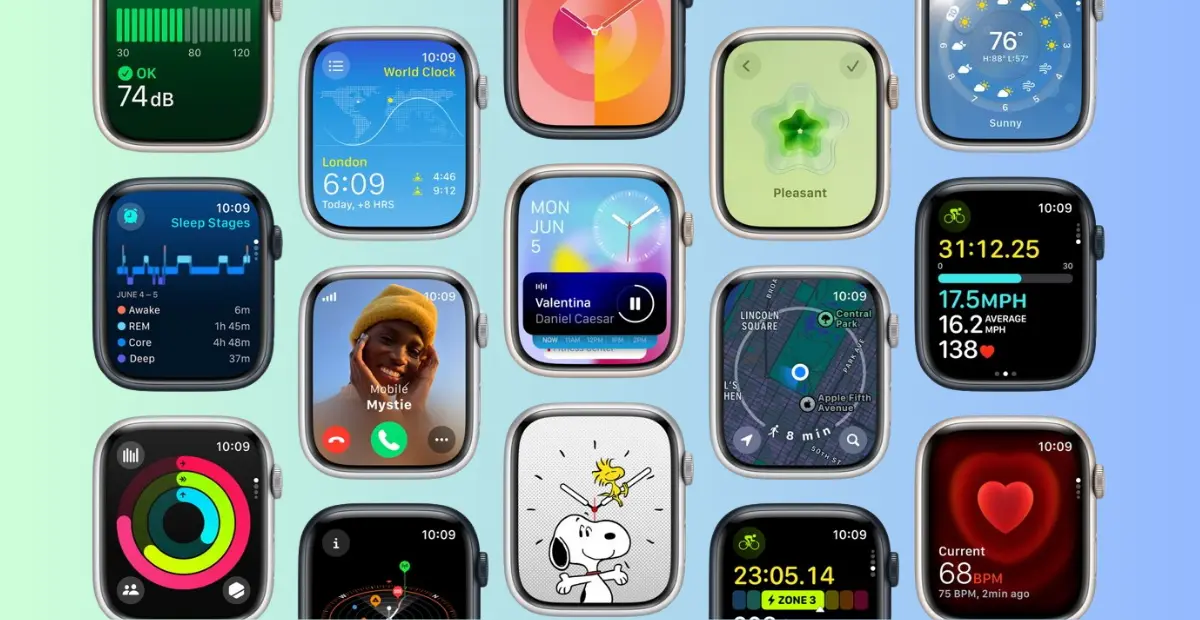 صورة توضيحية لساعات آبل Apple Watch تعرض واجهة جديدة بتصميم عصري في تحديث watchOS 12