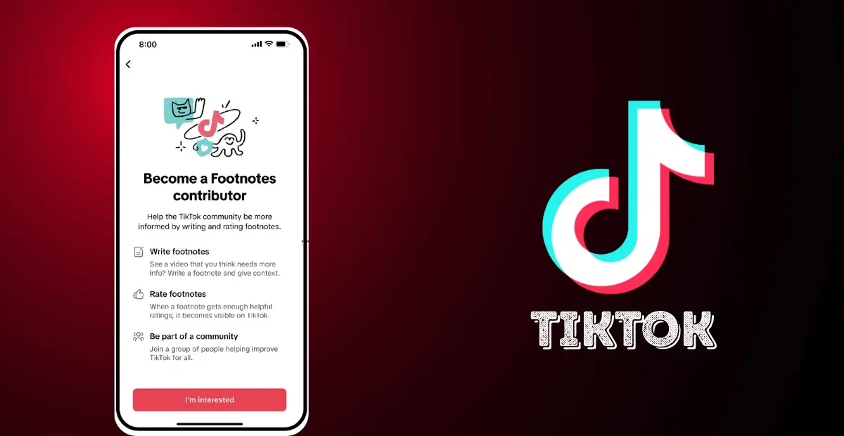 واجهة تطبيق تيك توك تعرض إشعارًا بميزة Footnotes الجديدة