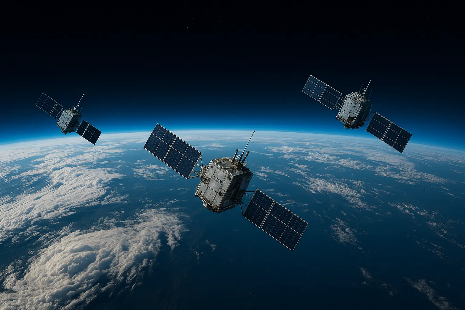 صورة افتراضية لأقمار صناعية صينية تشكل شبكة حواسيب خارقة في الفضاء لمعالجة البيانات باستخدام الذكاء الاصطناعي