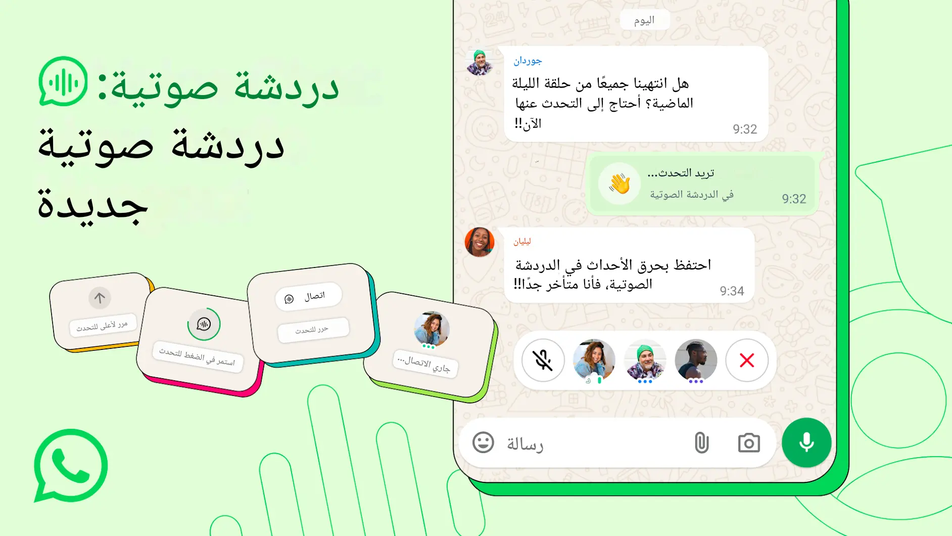 واتساب توسع ميزة المحادثات الصوتية لتشمل جميع المجموعات