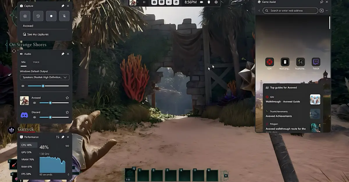 توفر Game Assist ميزة ذكية تُعرف باسم “الوعي باللعبة”، حيث يمكنها التعرف على اللعبة التي يلعبها المستخدم وتقديم اقتراحات فورية لأدلة ونصائح متعلقة بها. يمكن تثبيت نافذة Game Assist فوق اللعبة ومتابعة الخطوات مباشرة أثناء اللعب، مما يوفر وقت البحث والتنقل بين النوافذ.
