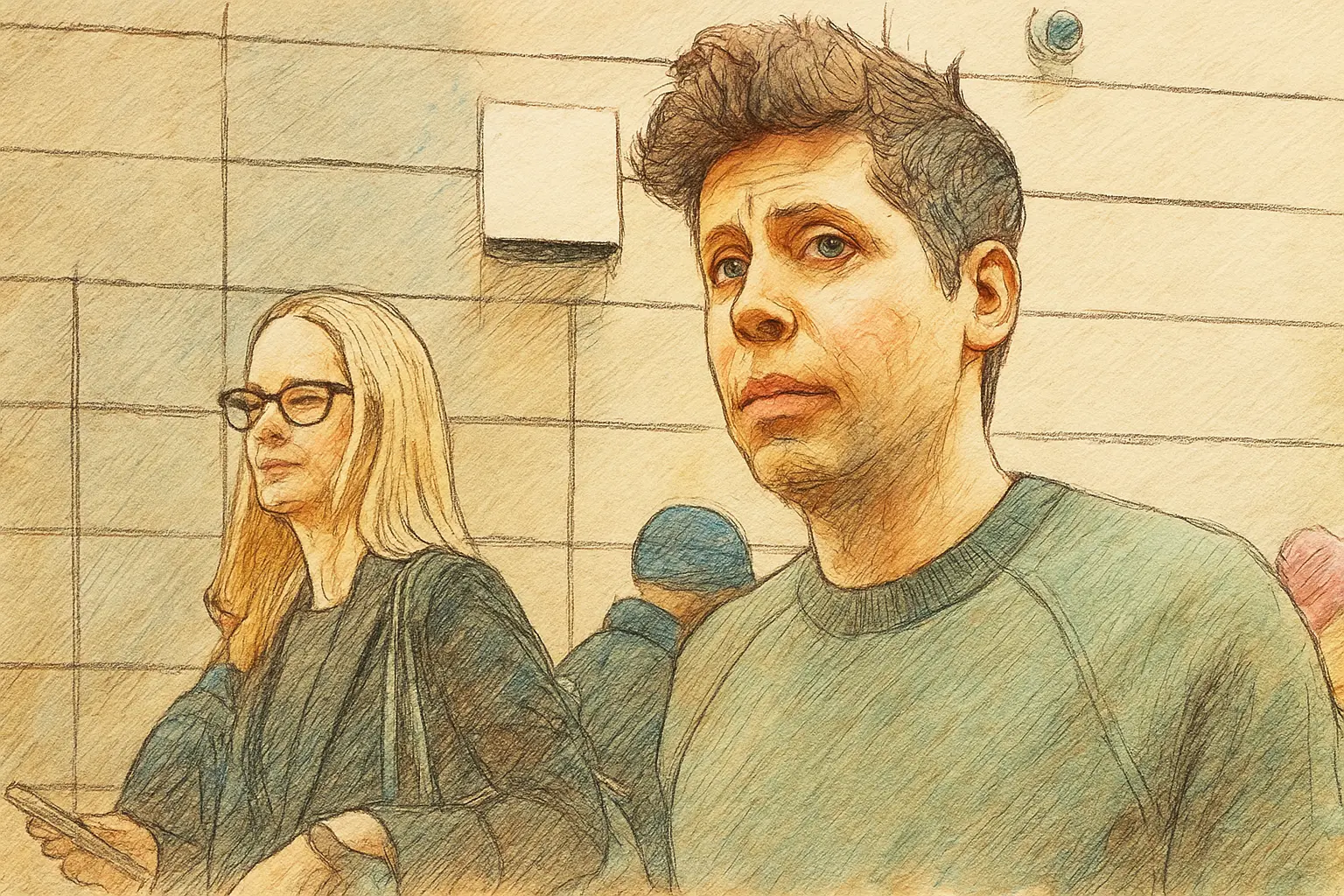 رسم تعبيري يوضح سام ألتمان يفكر في مستقبل الذكاء الاصطناعي وإمكانياته في توليد رؤى علمية جديدة بحلول عام 2026