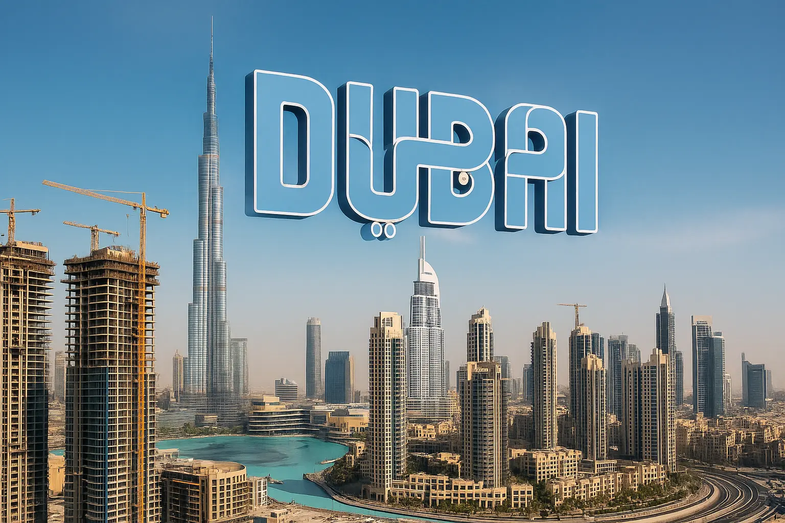 مشهد لبرج خليفة ومشاريع عقارية حديثة في دبي تعكس الطفرة العقارية ونمو البناء الداخلي