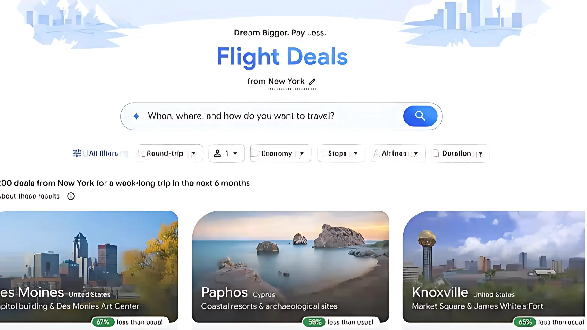 جوجل تطلق أداة عروض الرحلات Flight Deals لحجز تذاكر السفر بالذكاء الاصطناعي