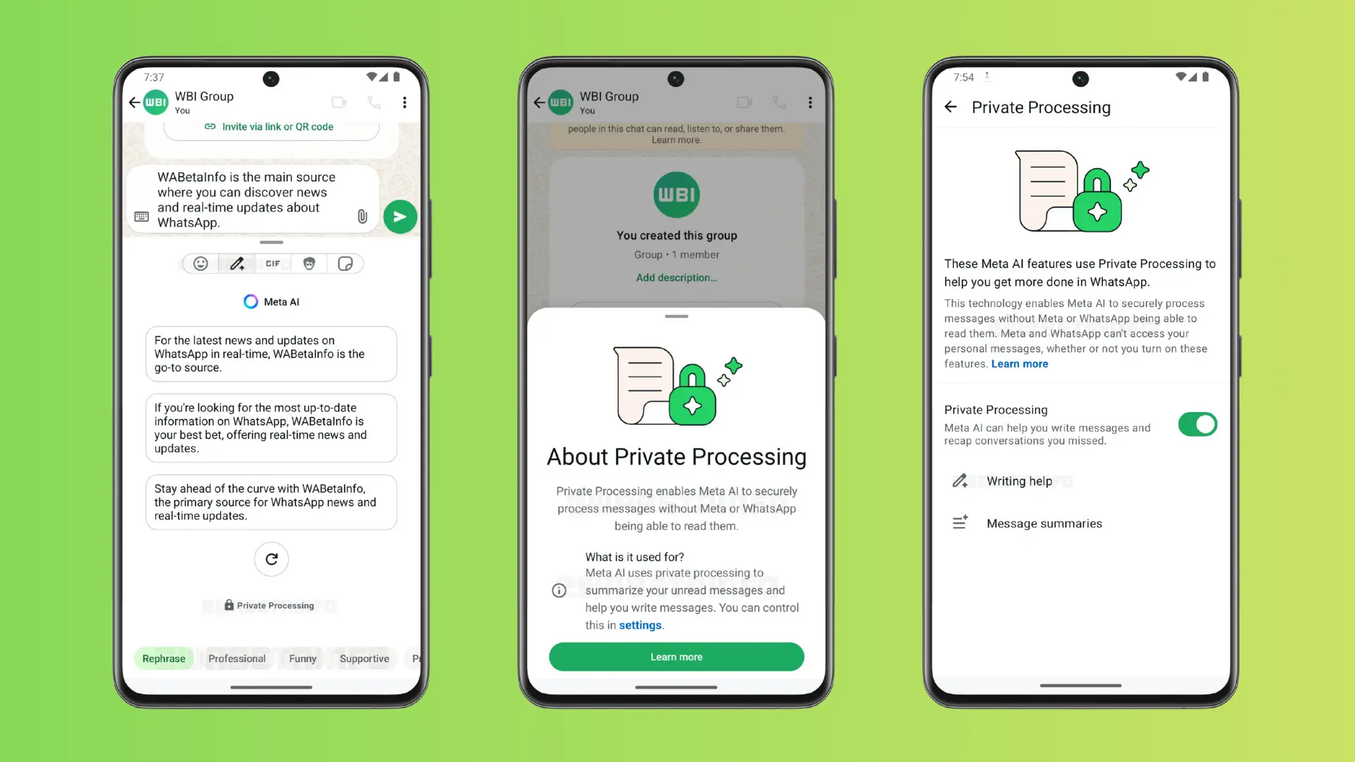 بحسب تقارير متخصصة مثل WABetaInfo، فإن الأداة الجديدة تعتمد على تقنية Private Processing من ميتا، ما يضمن أن المعالجة تتم بشكل آمن ومشفر دون حفظ النصوص أو مشاركة البيانات. وإضافة إلى ذلك، يواصل واتساب العمل بنظام التشفير التام بين الطرفين لضمان أعلى مستويات الأمان. كما تبقى هوية المستخدم مجهولة بشكل كامل، الأمر الذي يعزز حماية الخصوصية. ومع ذلك، تظل هذه الميزة اختيارية، حيث لا تُفعل إلا إذا قرر المستخدم تشغيلها يدويًا من خلال إعدادات الحساب.