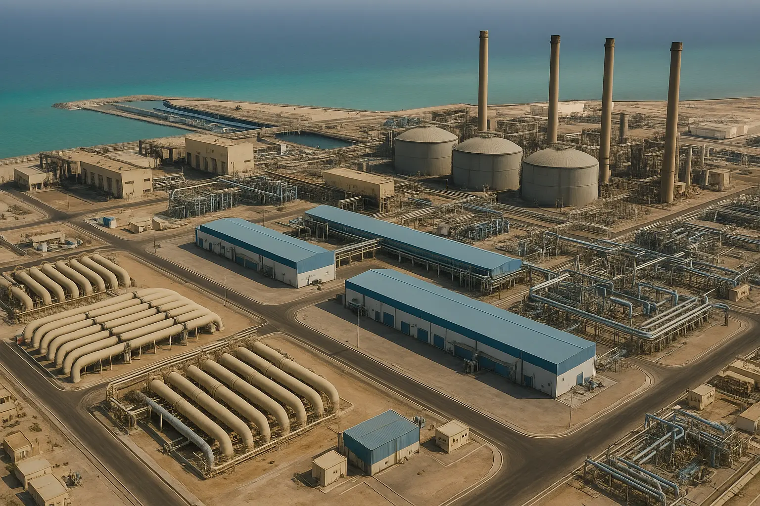 - تضم 27 وحدة تحلية وتنتج المياه والكهرباء معًا.
