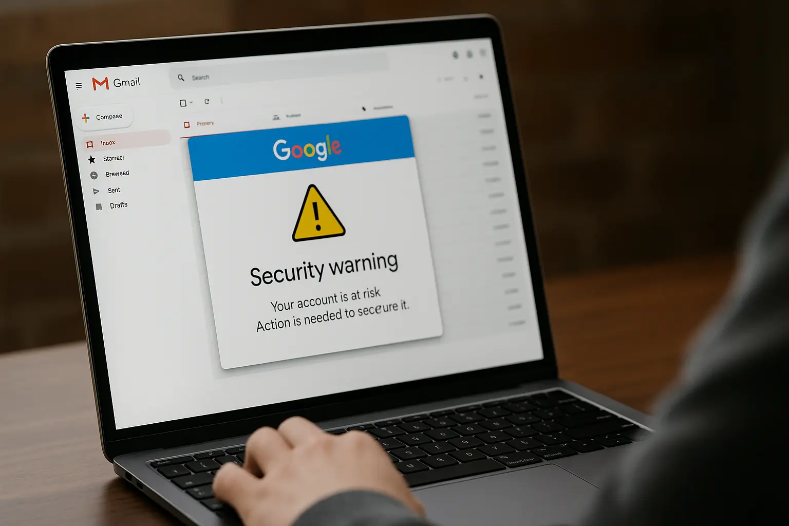 مستخدم يتفقد بريده الإلكتروني على شاشة حاسوب، مع تحذير أمني من جوجل حول اختراق Gmail وطرق حماية الحساب