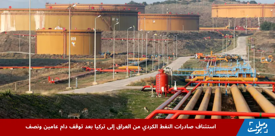 استأنف العراق يوم السبت تصدير النفط الخام من إقليم كردستان شبه المستقل إلى تركيا عبر خط أنابيب كركوك-جيهان بعد توقف استمر أكثر من عامين ونصف. وأعلنت وزارة النفط العراقية أن التدفقات بدأت في الساعة السادسة صباحًا بالتوقيت المحلي، مؤكدة أن العمليات تمت بسلاسة ودون تسجيل أي مشكلات فنية بارزة.
