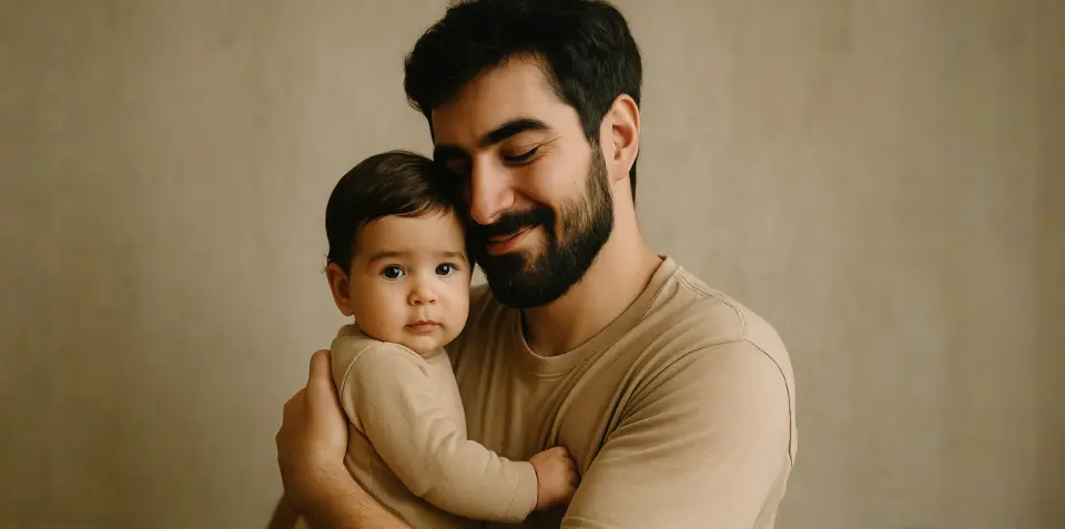 رجل يحتضن نفسة وهو طفل رضيع في صورة مولدة بالذكاء الاصطناعي Gemini ضمن ترند احضن نفسك كطفل